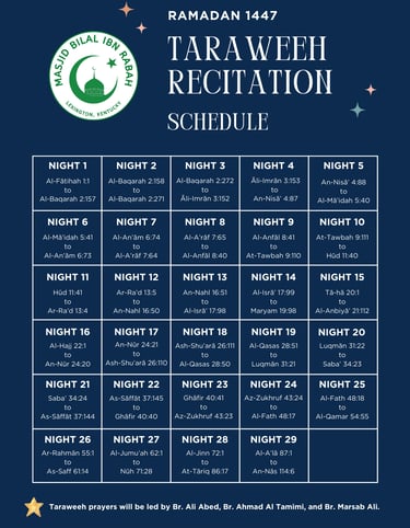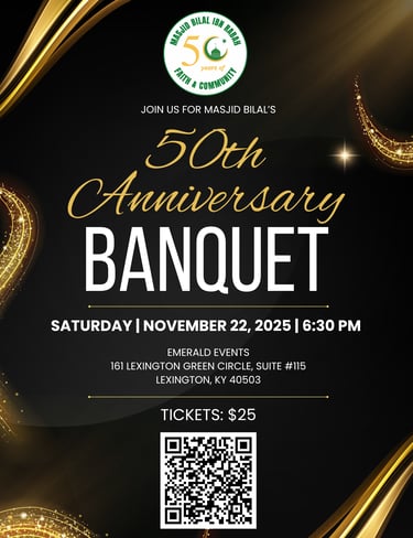 With the promotion of goodwill, tolerance, unity, and understanding, Masjid Bilal Ibn Rabah serves the Muslim and non-Muslim community in the Lexington metro area. We are a non-profit, religious, charitable, educational, and non-political organization.
