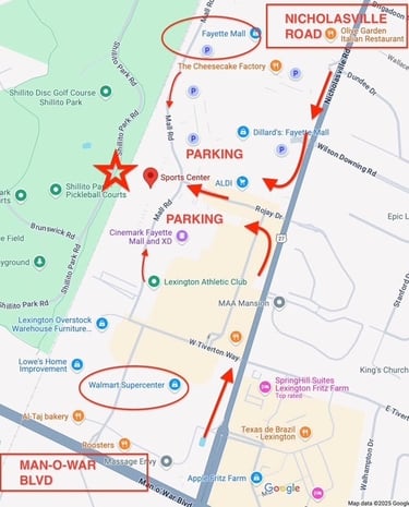 Parking is available on the lot off Rojay Drive. Please see the pictures below for reference.
